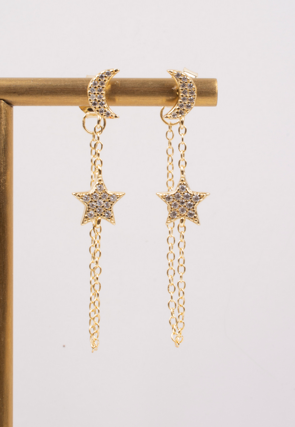04348 ARETES CADENA LUNAS Y ESTRELLAS