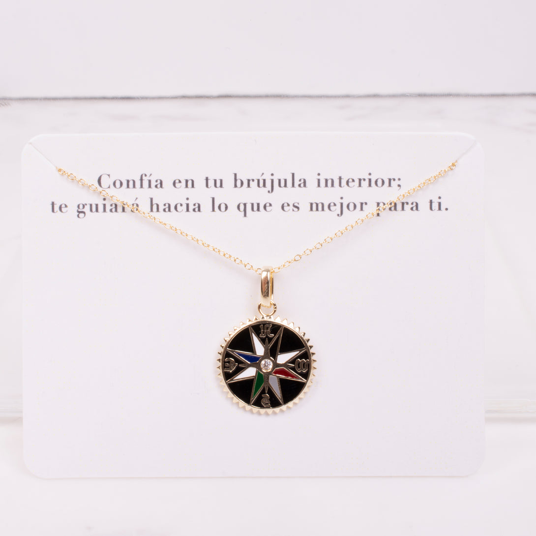 Este collar simboliza esa brújula interior que siempre sabe hacia dónde ir, incluso cuando el camino parece confuso.