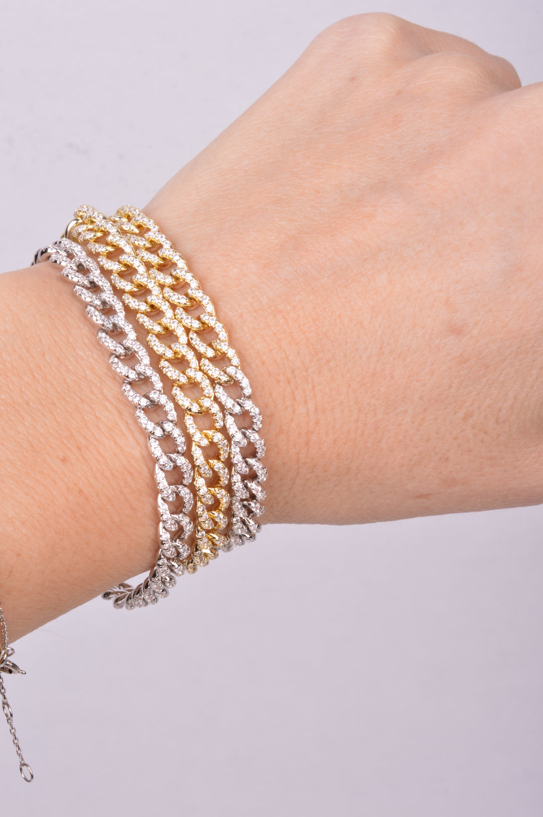 04785 Pulsera eslabones con zirconias dorado y plateado