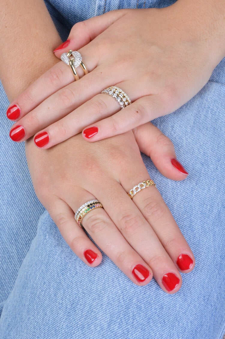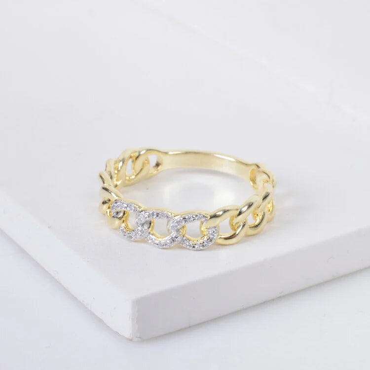 04792 Anillo eslabones con zirconias dorado y plateado talla 8