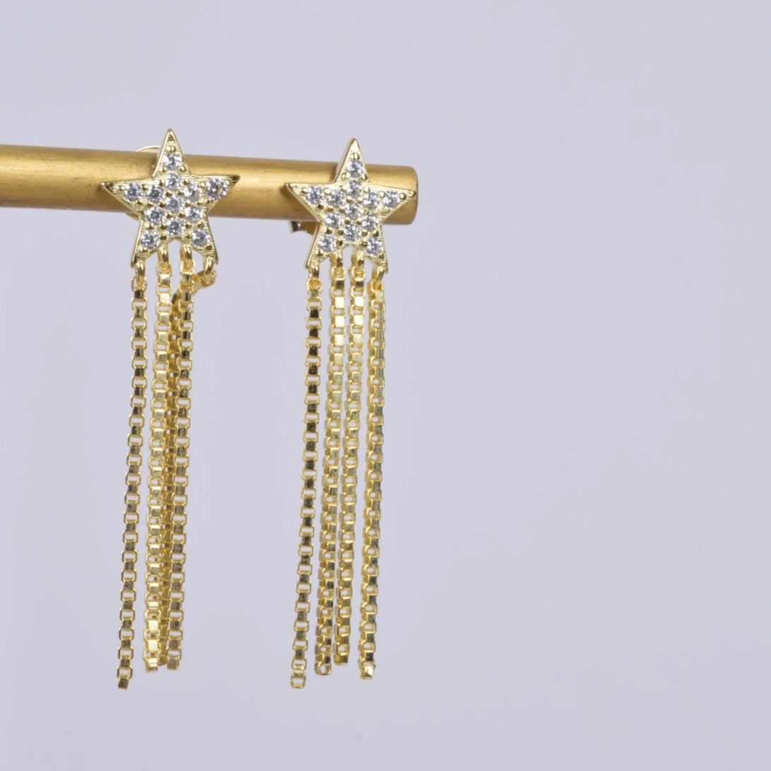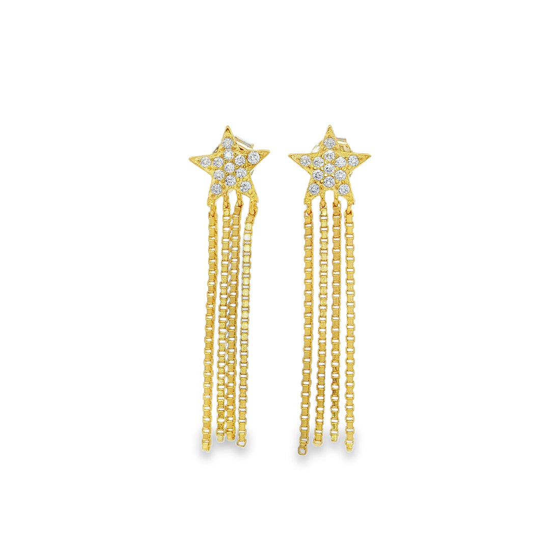 04867 Aretes estrella cadenas de zirconias dorado