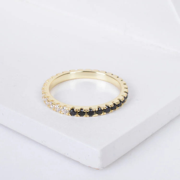 04882 Anillo infinity zirconias blancas y negras dorado talla 7