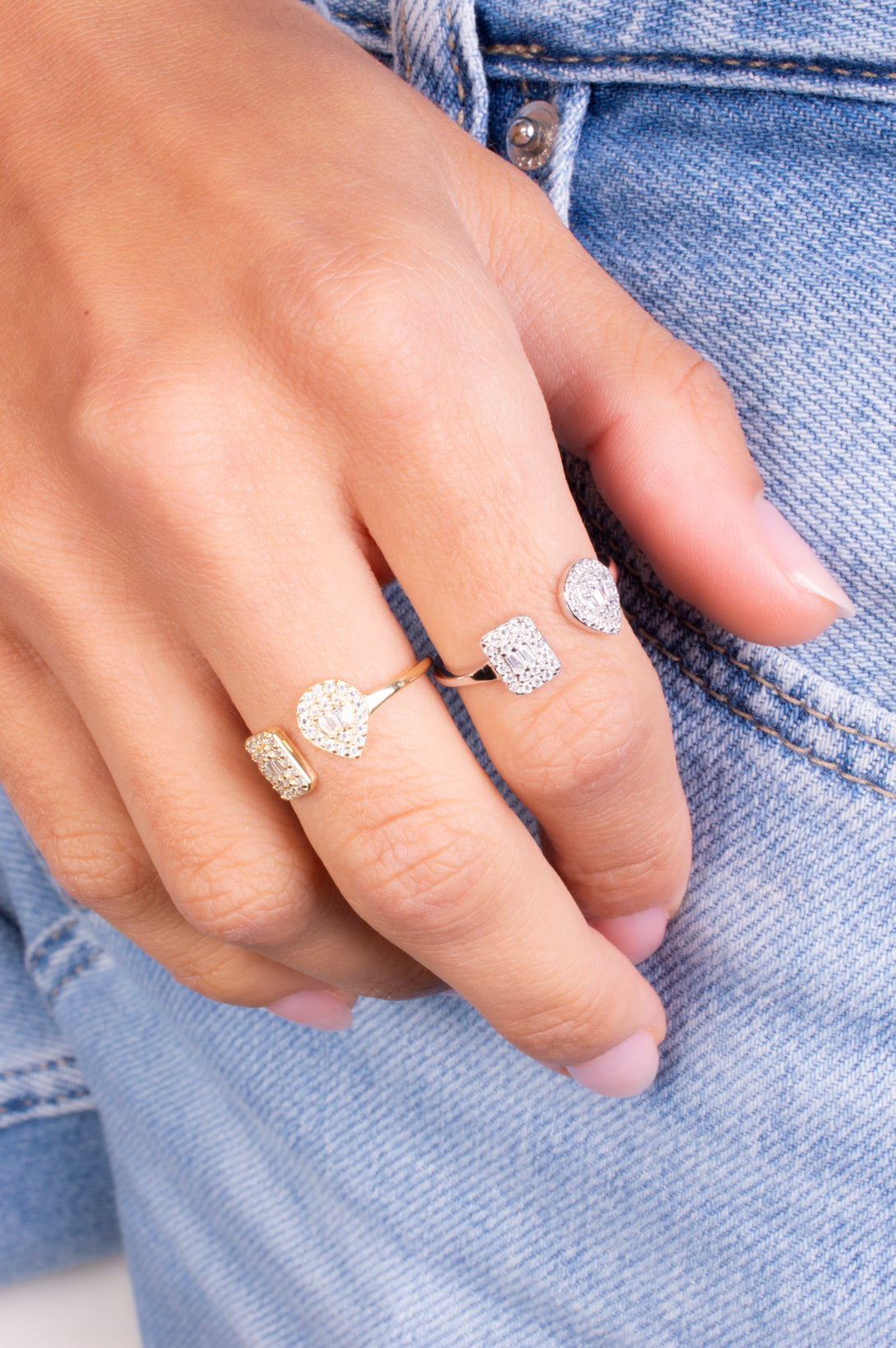 04909 Anillo gota y rectangulo plateado