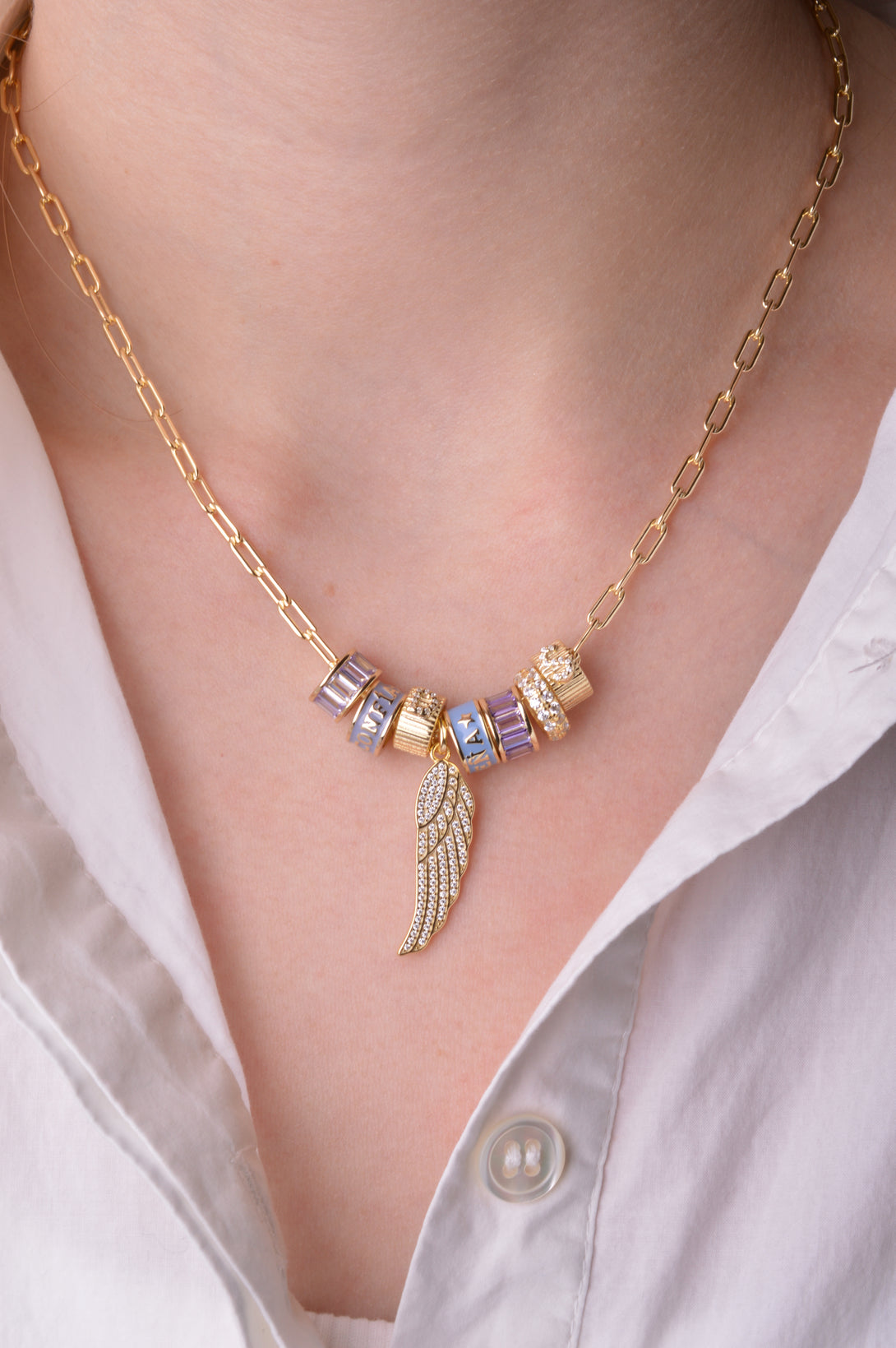 Combínalo con nuestro collar de eslabones y agrega tus charms de palabras o iniciales para crear una pieza que refleje tu esencia.