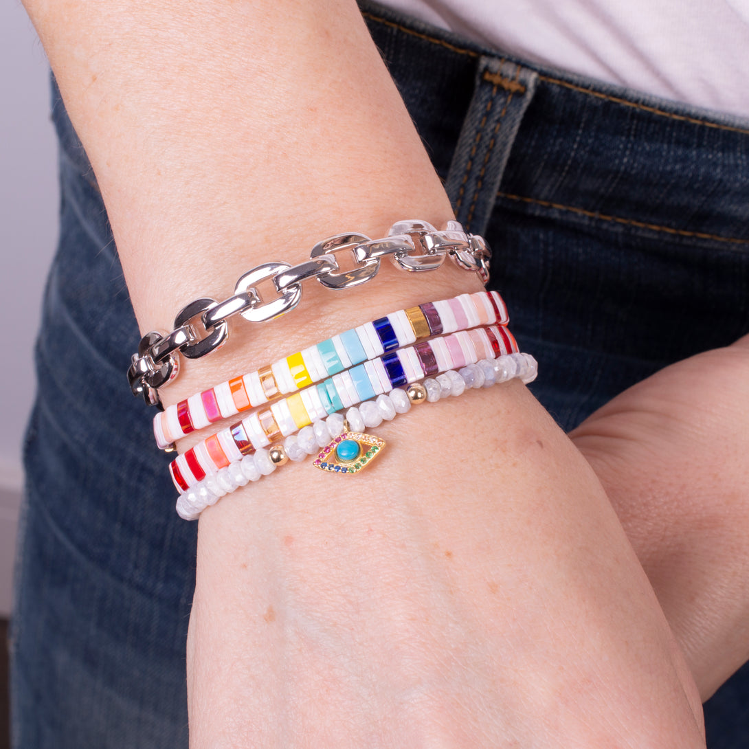 20-1231 PULSERA PIEDRAS CON DIJE OJO COLRES