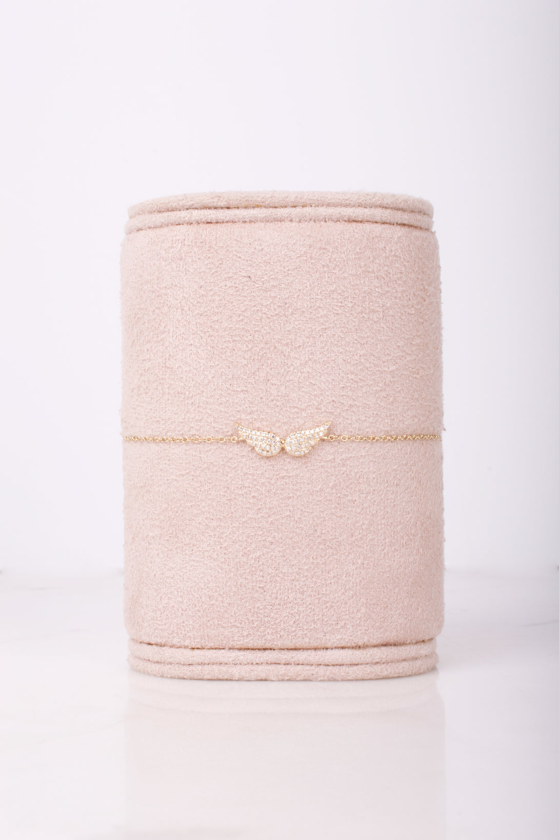 Un símbolo de libertad y esperanza. Esta pulsera de alas en oro amarillo 14KT con diamantes representa la fuerza interior para volar alto, confiar en el camino y dejarte guiar por lo que amas. Un diseño delicado pero poderoso, ideal para llevar sola o en layering con otras pulseras. ✨