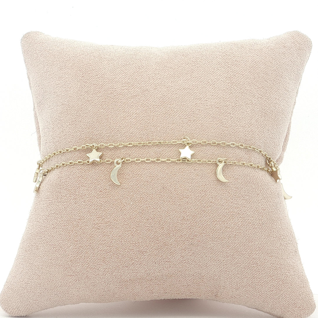 24-02100 Tobillera doble lunas y estrellas dorada