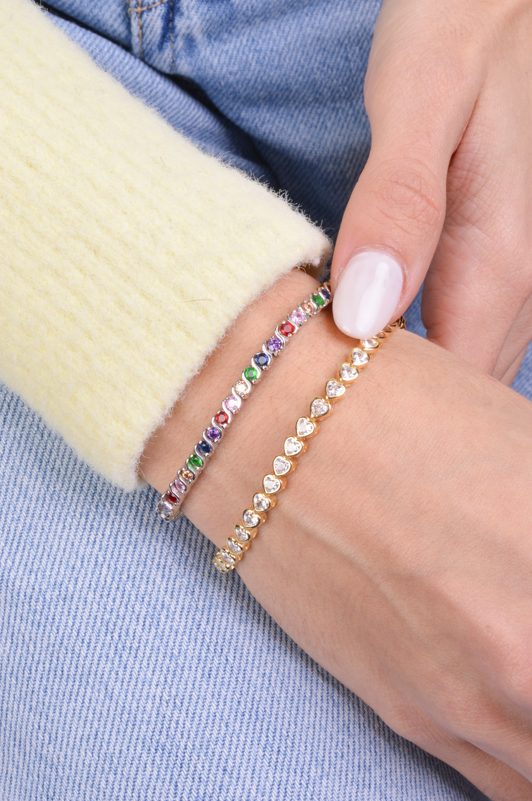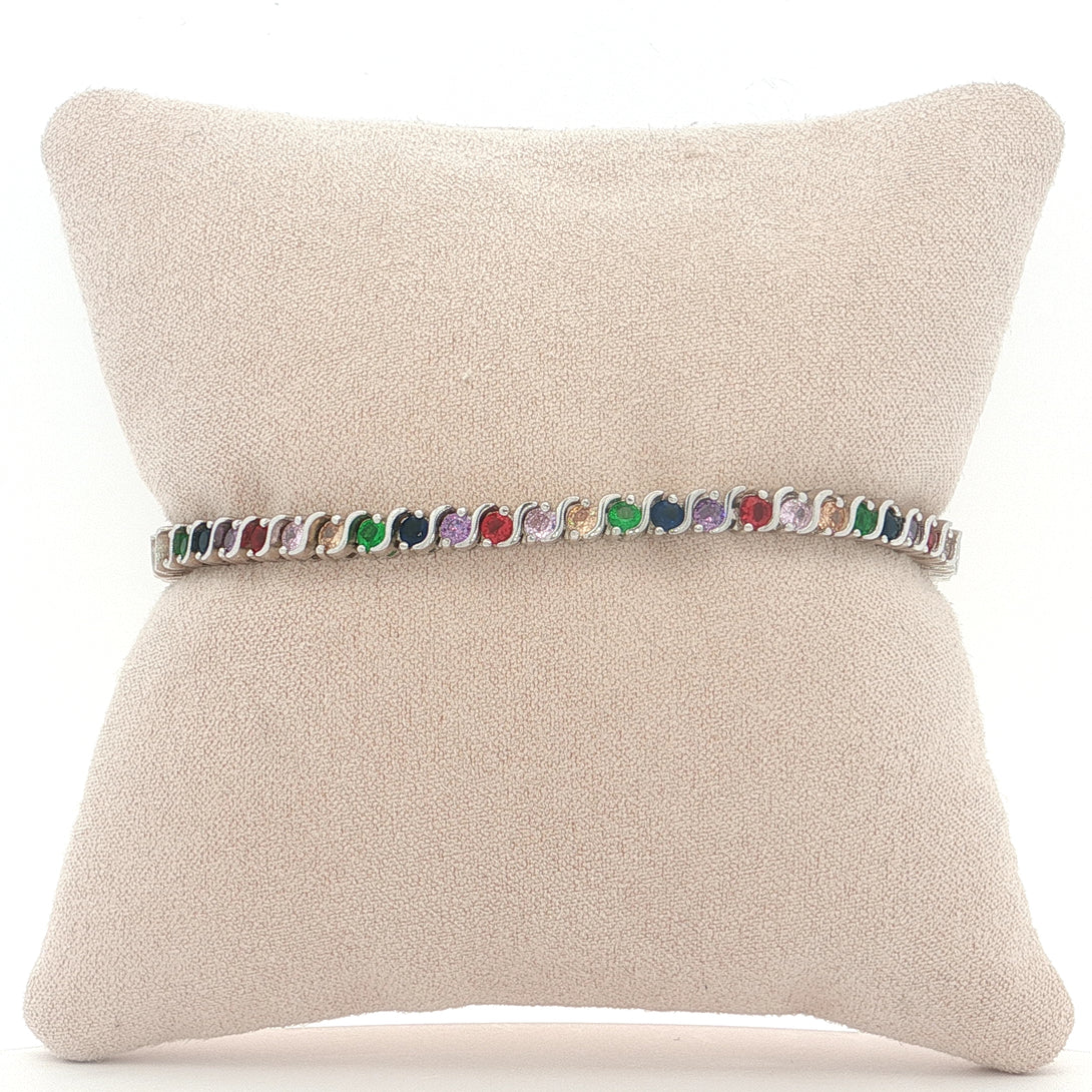 25-0233 Pulsera tennis multicolor plateada de 17 cm