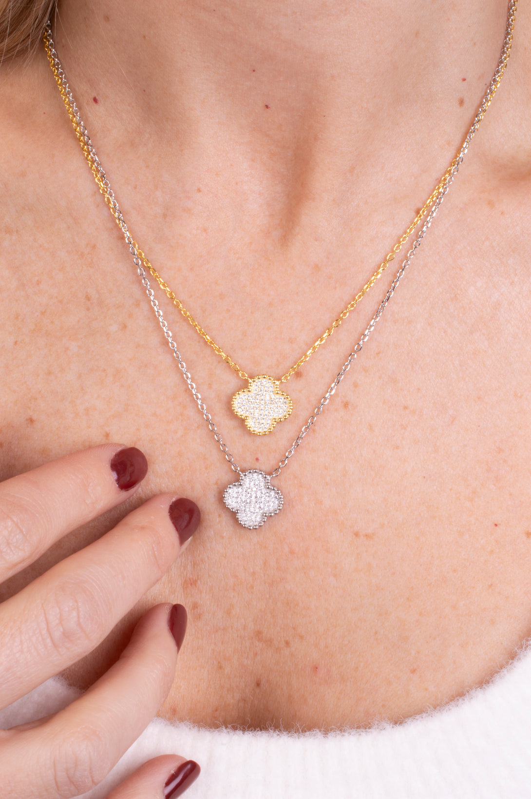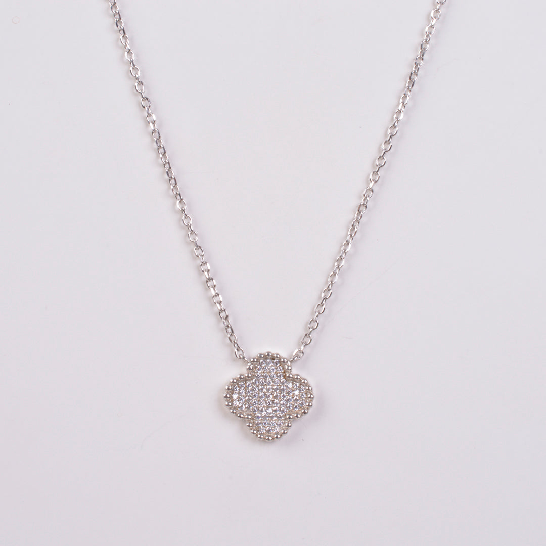 25-0816 Collar dije flor cuatro petalos zirconias plateado