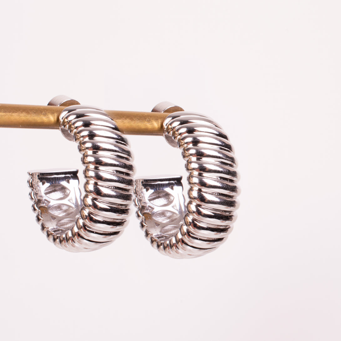 Pieza en brass con acabado plateado, de look moderno y versátil. Su brillo fresco y elegante es perfecto para elevar cualquier outfit y dar ese toque cool que nunca pasa desapercibido.