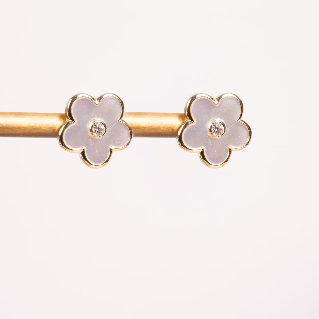 25-73176 Aretes flores madre perla con bezel dordo