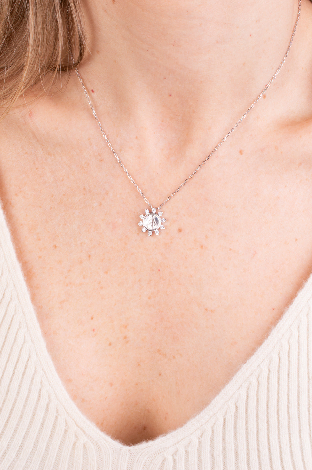 25-7320 Collar dije Virgen Milagrosa circulo zirconia en plateado