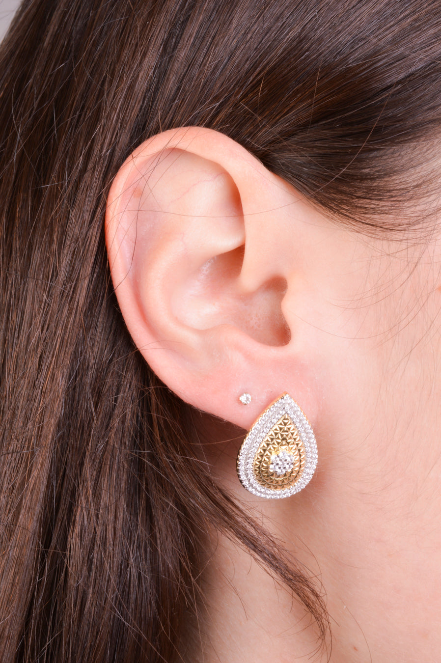 25-73385 Aretes gota zirconias dorado