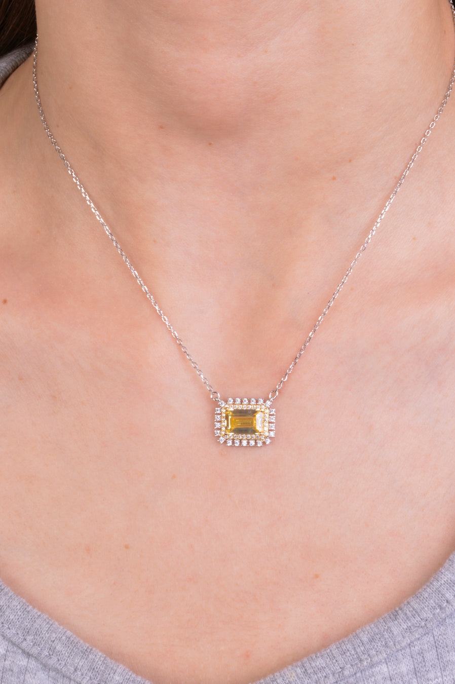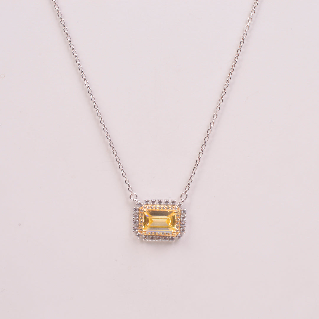 25-73478 Collar zirconia rectangular amarilla en plateado