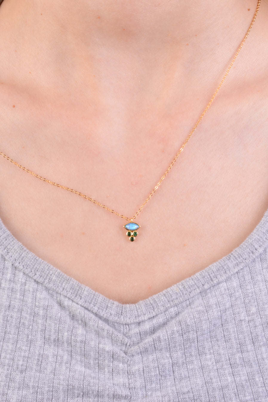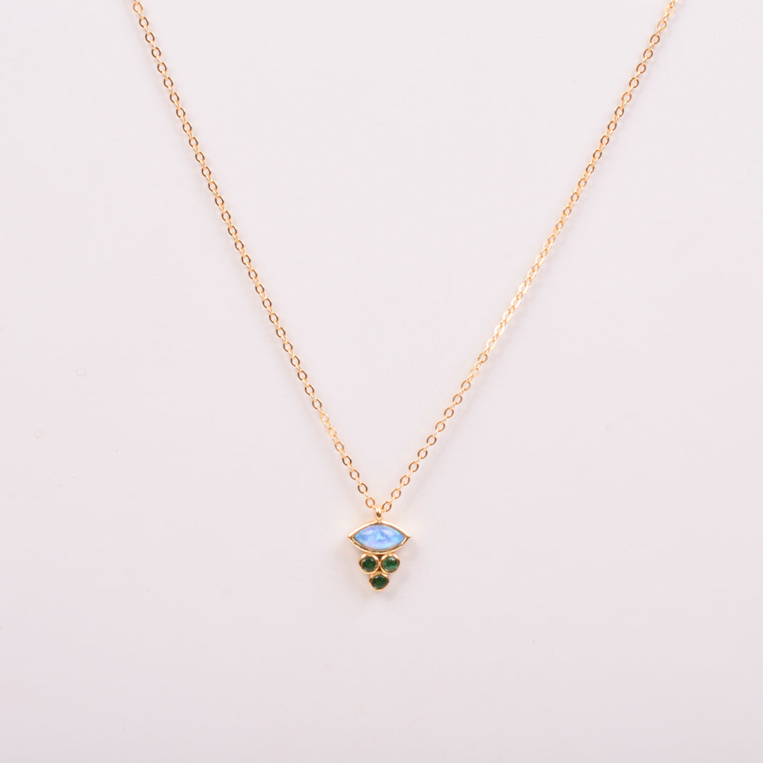 25-73517 Collar dije ovalo opalo y trio verde en dorado