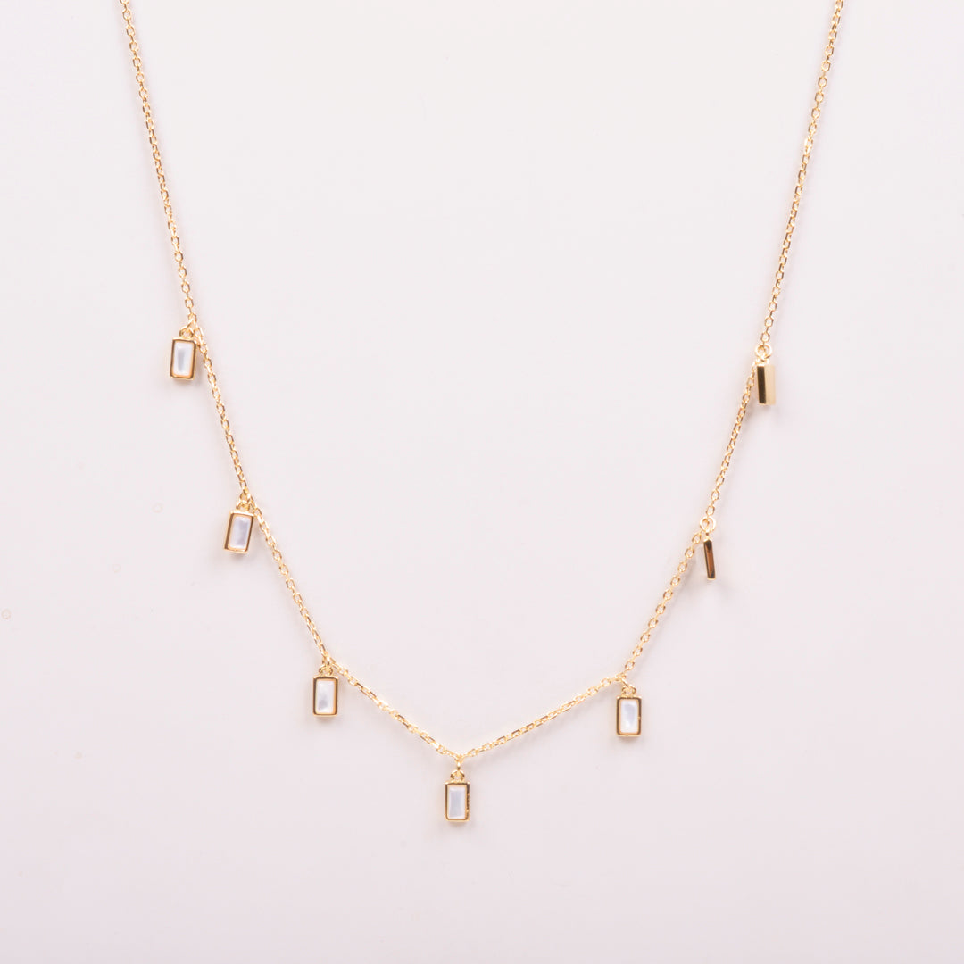 25-73535 Collar dijes rectangulos madre perla en dorado