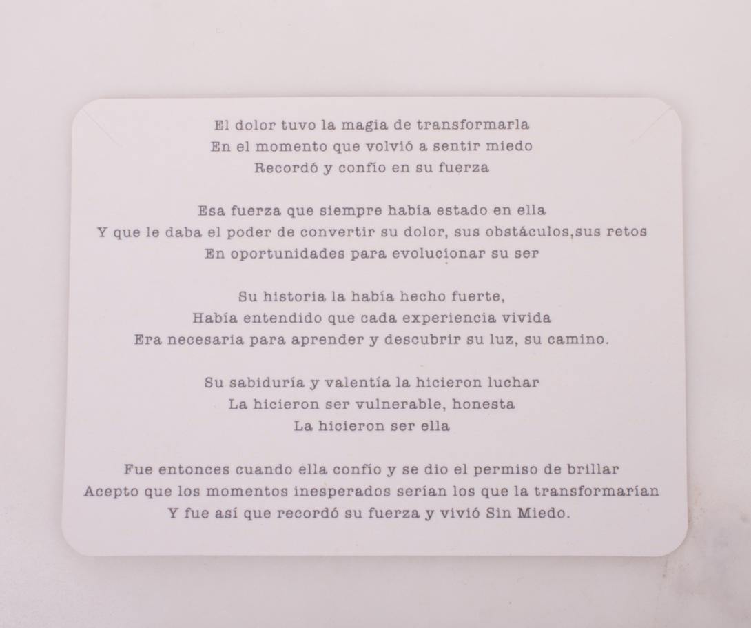 Llévala contigo como símbolo de tu fuerza interior, de tu luz que brilla incluso en los días grises, y de tu promesa de vivir — siempre — Sin Miedo.