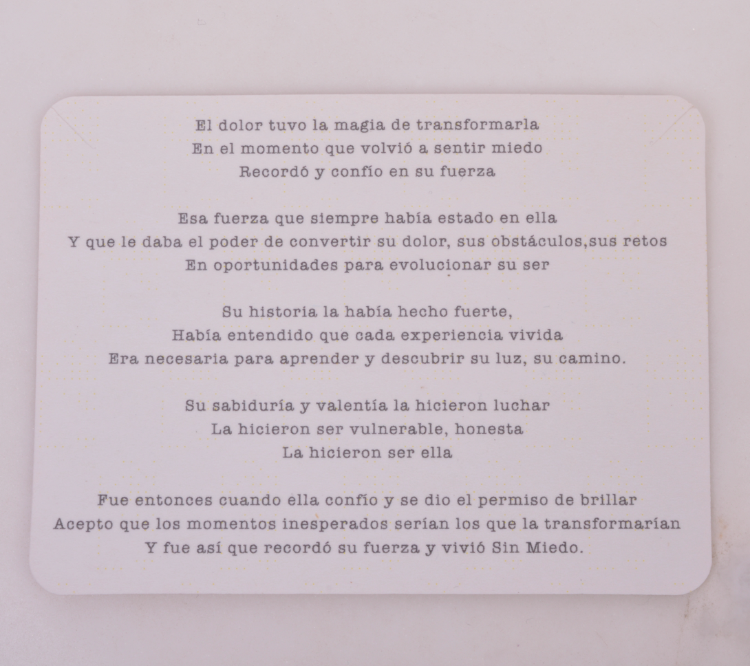 Llévala contigo como símbolo de tu fuerza interior, de tu luz que brilla incluso en los días grises, y de tu promesa de vivir — siempre — Sin Miedo.