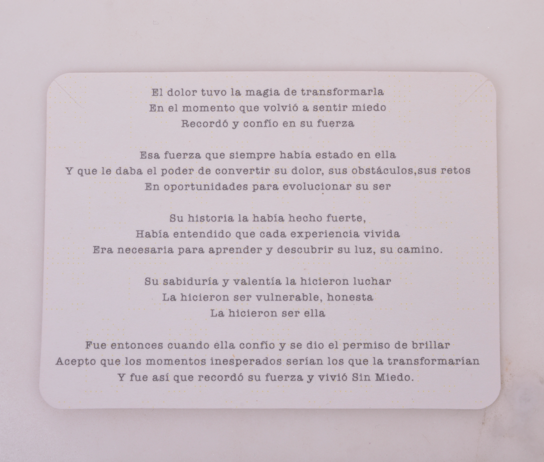 Llévala contigo como símbolo de tu fuerza interior, de tu luz que brilla incluso en los días grises, y de tu promesa de vivir — siempre — Sin Miedo.