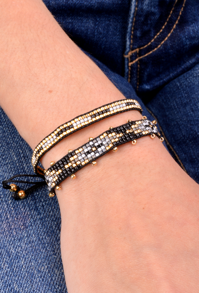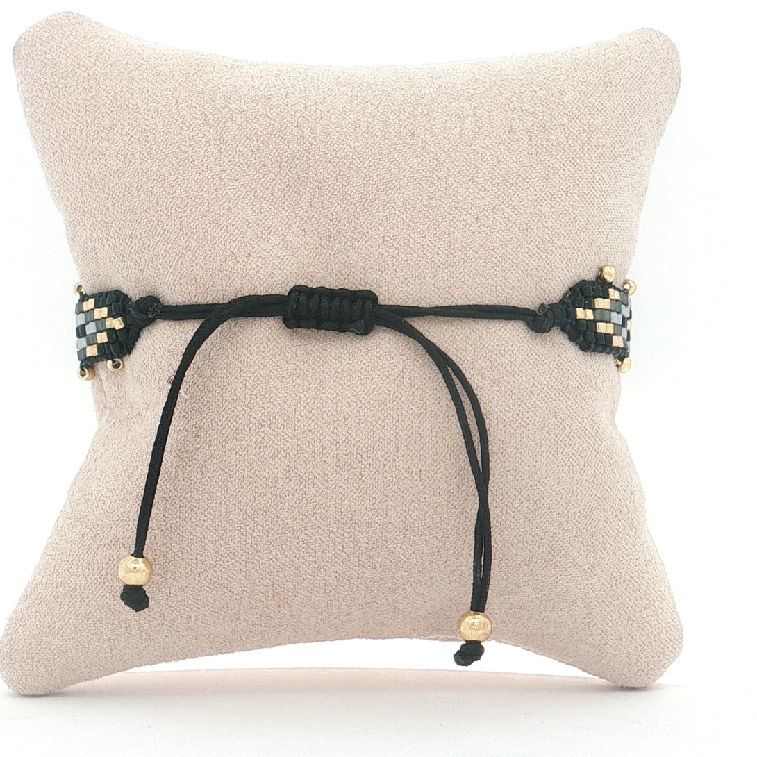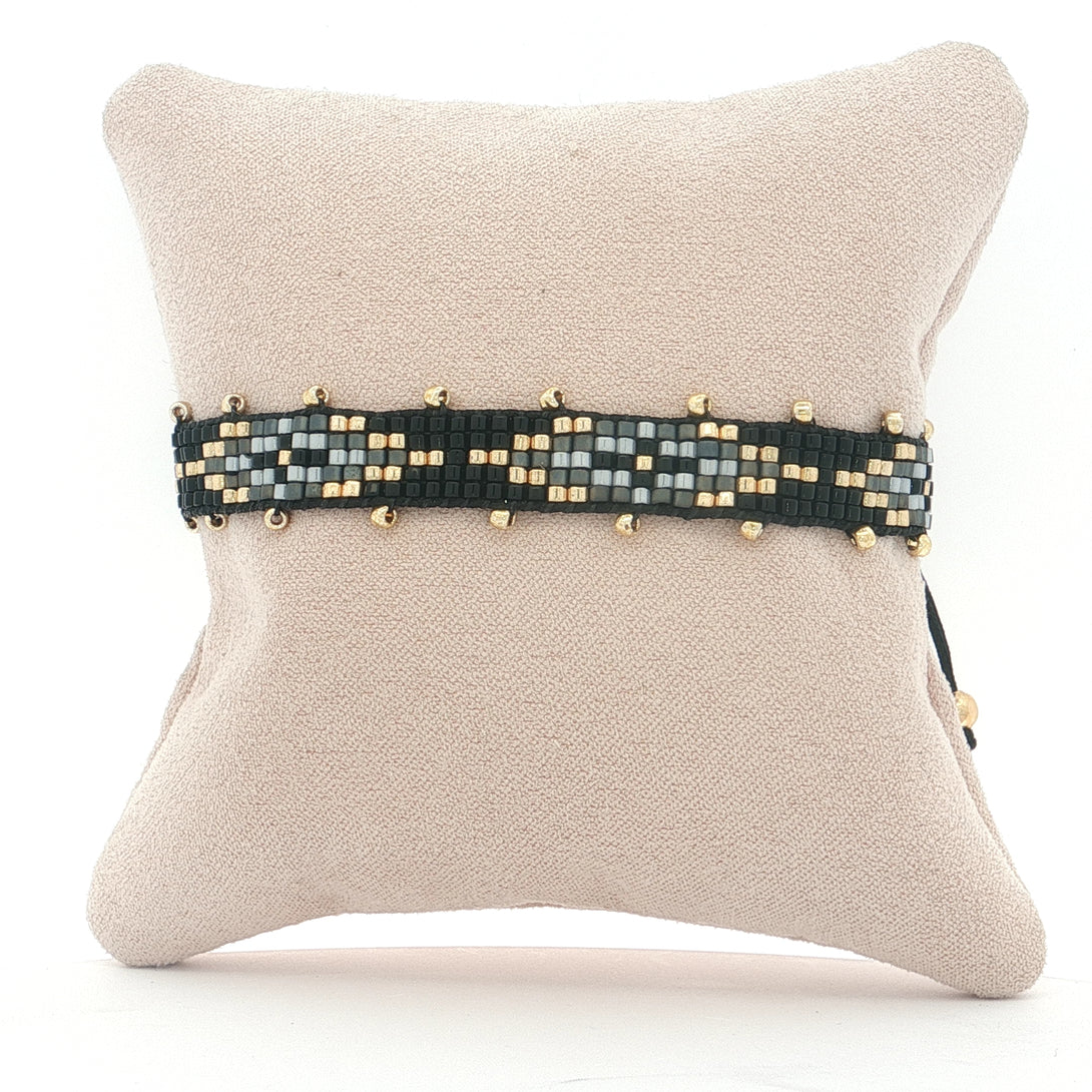 25-7966 Pulseria rombos gris y negro