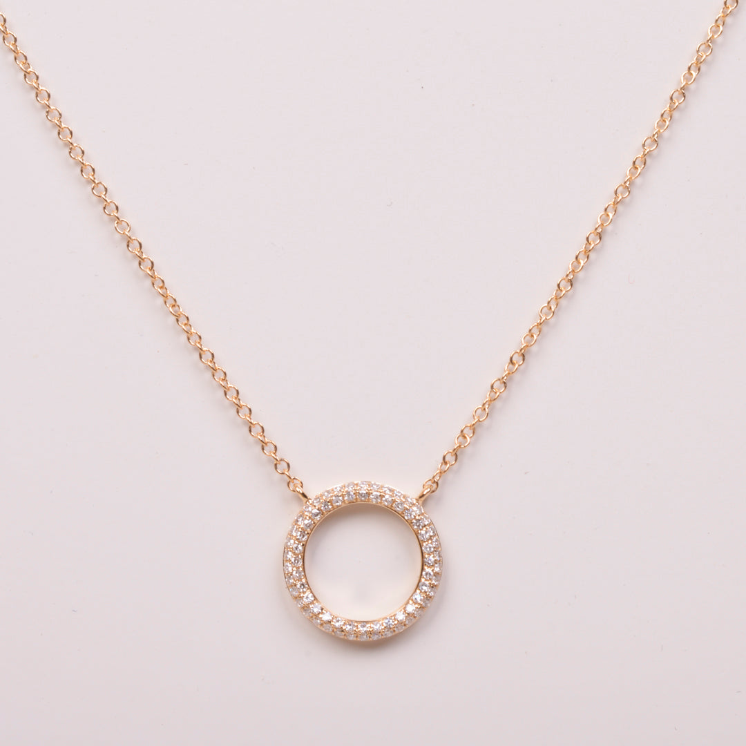 Este collar en oro amarillo 14KT está engastado con 70 diamantes redondos naturales (0.16 ct total) que añaden un brillo sutil y elegante. Con un peso de 2.10 g y largo ajustable de 16+1+1 in, es una pieza versátil que se puede usar sola como protagonista o en layering para un look moderno y sofisticado.