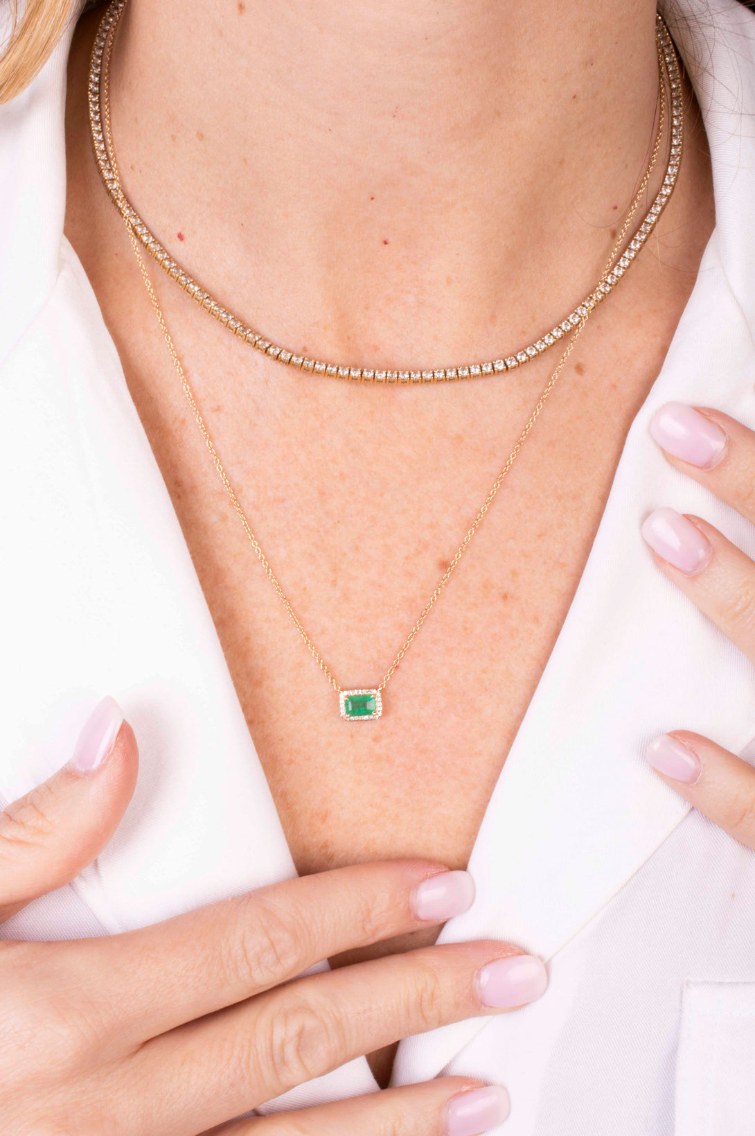 Este collar de oro amarillo 14KT centra su elegancia en una esmeralda natural talla oval de un verde profundo (0.56 ct), enmarcada por diamantes naturales que realzan su brillo y sofisticación. Su diseño delicado lo convierte en una joya versátil —perfecta para usar sola o en layering. 💚