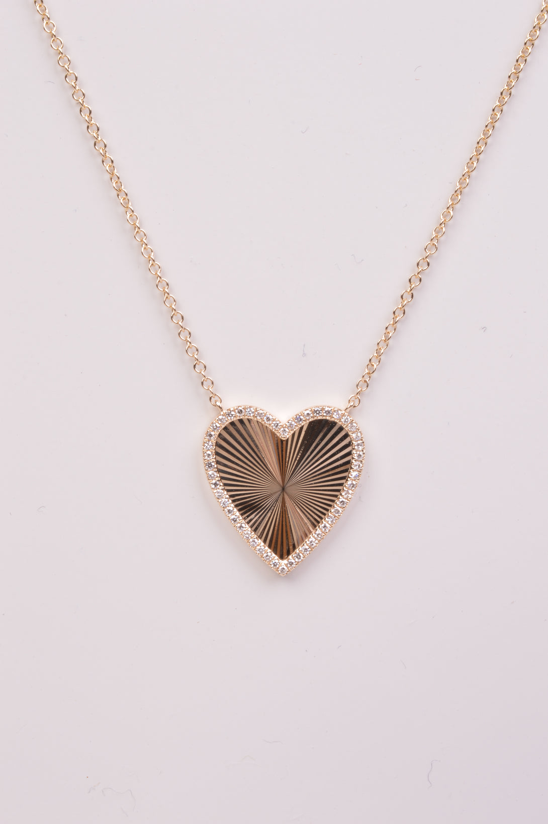 Este collar en oro amarillo 14KT está engastado con 50 diamantes redondos naturales (0.11 ct total) que iluminan el dije en forma de corazón con un brillo sutil y elegante. Con un peso de 3.05 g, es una pieza delicada y sofisticada que celebra el amor y la conexión en todas sus formas.