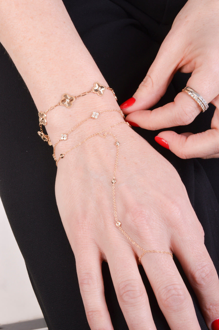 Un amuleto moderno de suerte y elegancia. Esta pulsera de clovers en oro amarillo 14KT combina el brillo de los diamantes con la armonía del diseño clásico, creando una pieza versátil que puedes usar todos los días o como statement en tu stack. Cada trébol representa esperanza, fe, amor y fortuna — un recordatorio de que lo bueno siempre está por llegar. ✨