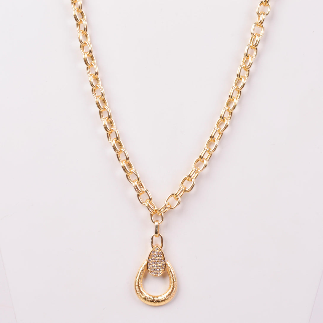 25-9312 Collar cadena circular dije ovalo dorado con zirconias