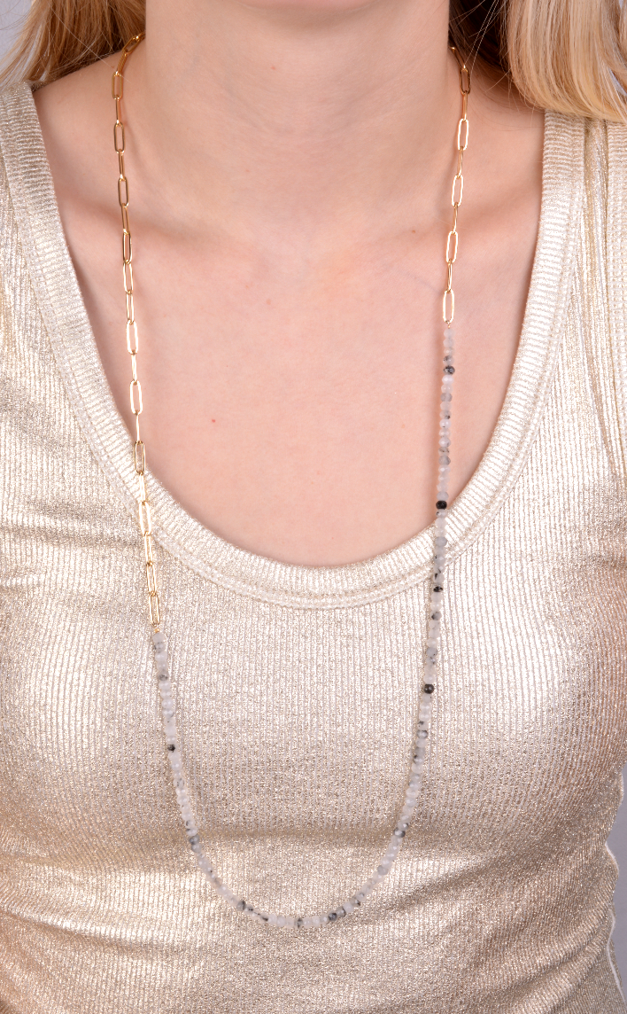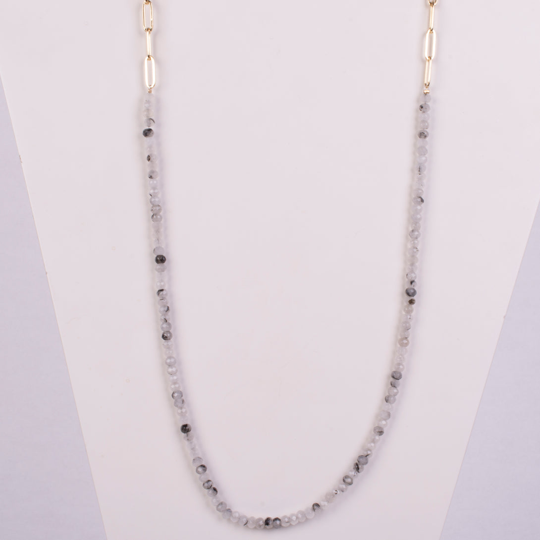 25-93128 Collar largo con cuarzo rutilado  blanco