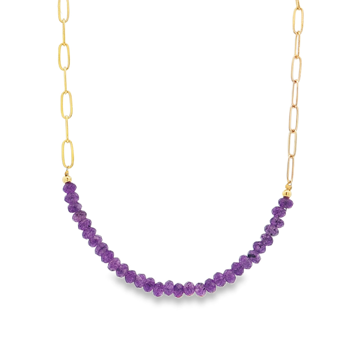 25-9333 Collar cadena paperclip con amatista en medio