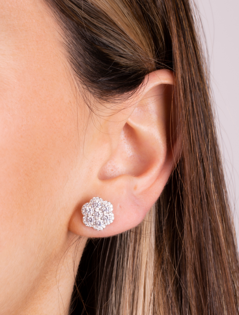 73232 ARETES FLOR ZIRCONIAS PLATEADO