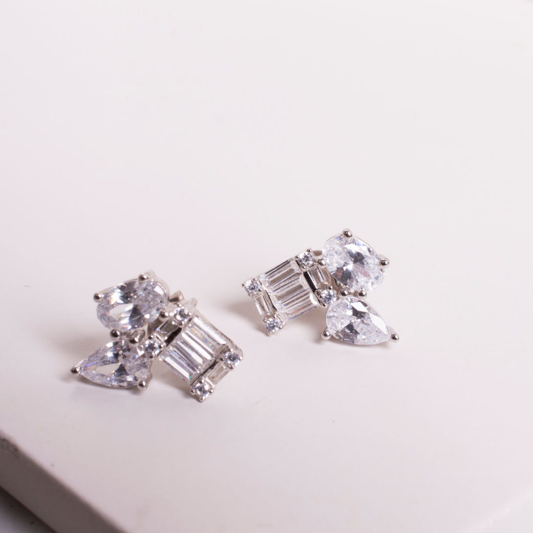 7335P ARETES CUADRO OVALO Y GOTA PLATEADO