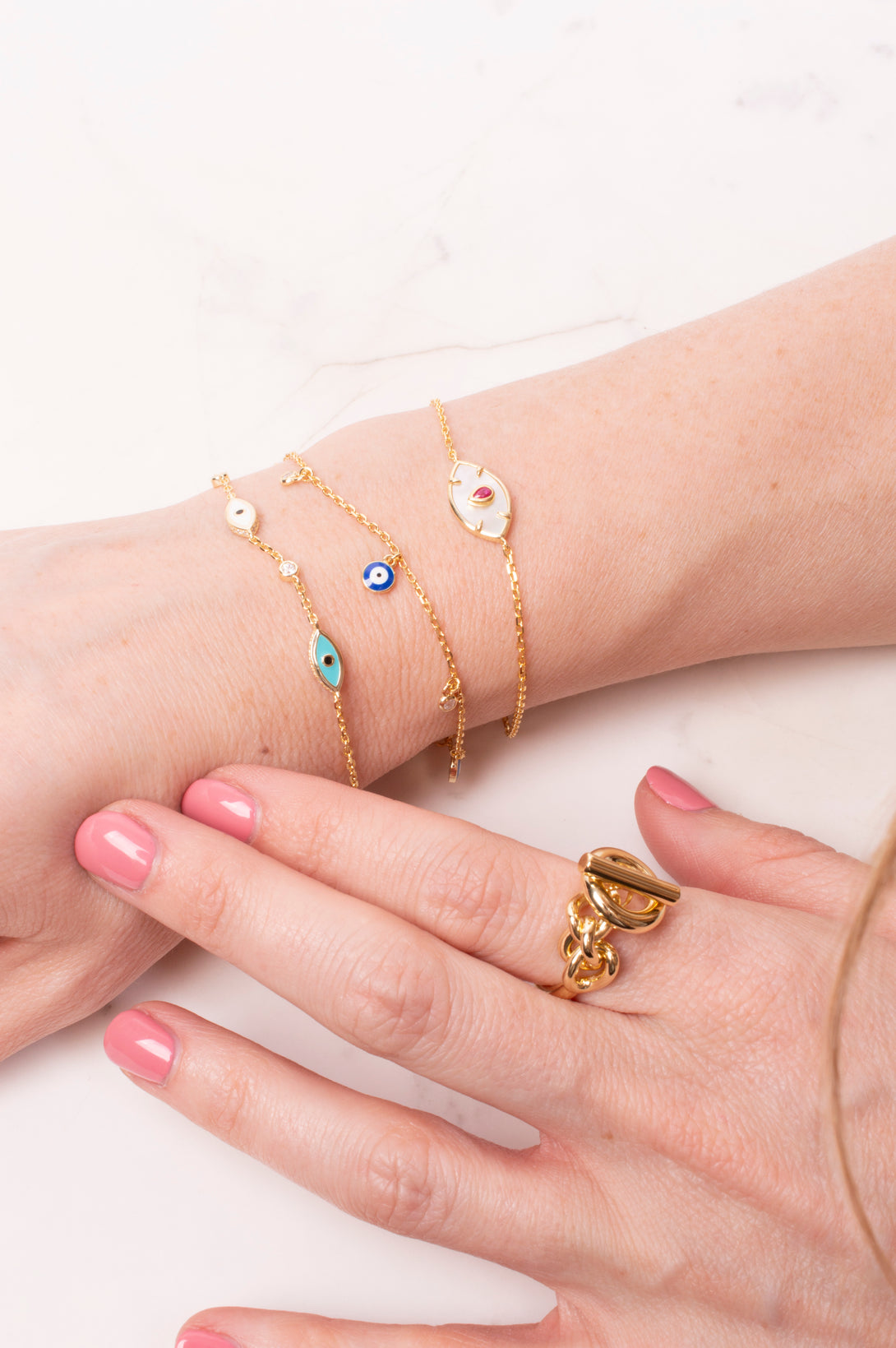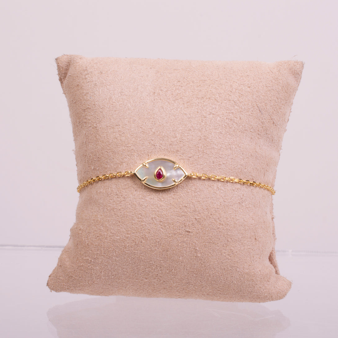 73729 Pulsera ojo madre perla con zirconia gota roja