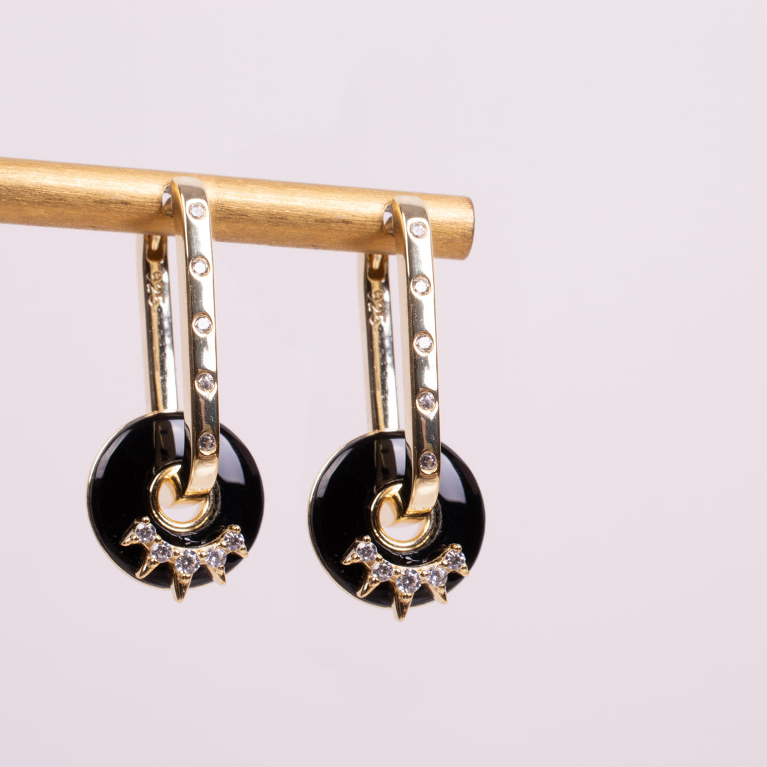 73947 Arracadas ovaladas y aro onix con zirconias