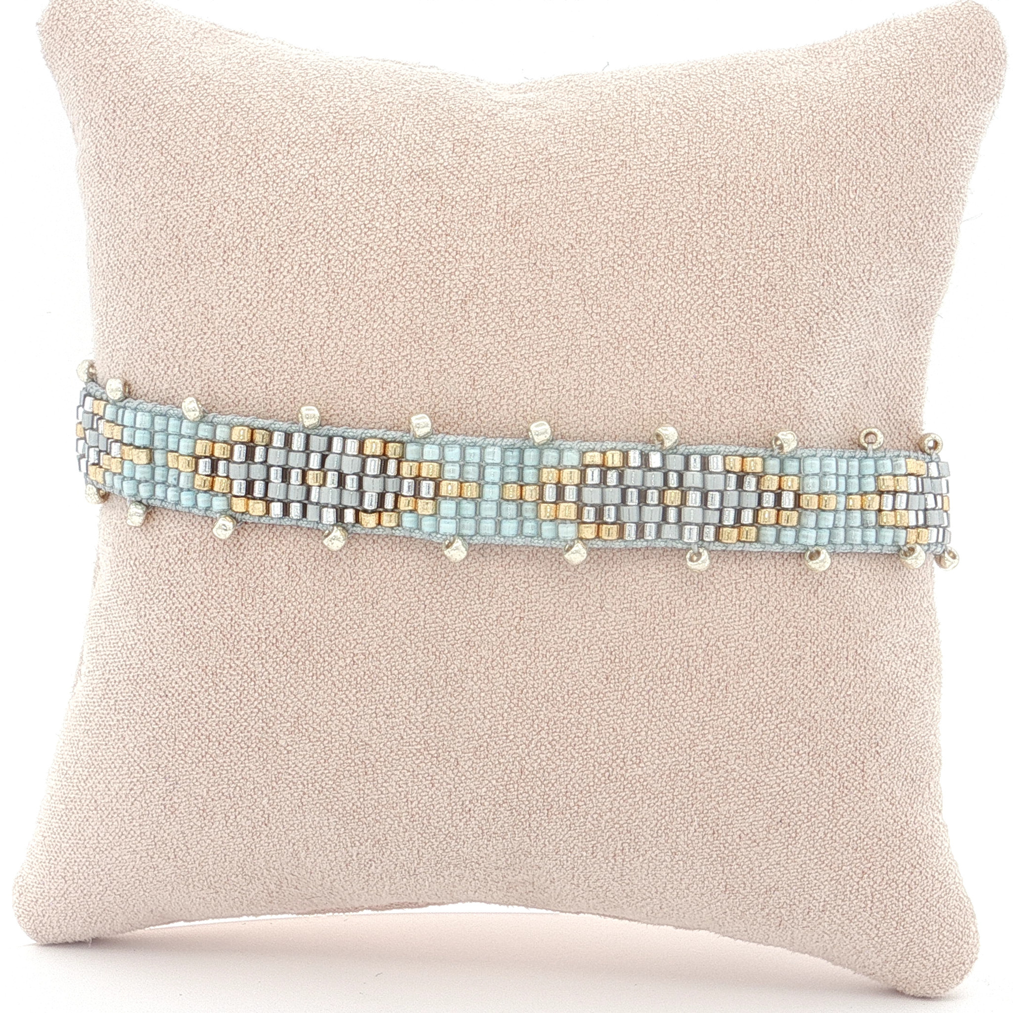 25-7964 Pulsera rombos plateado dorado y verde menta