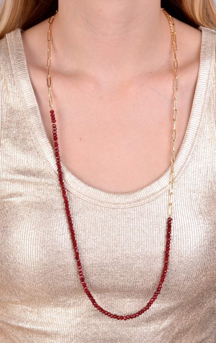 25-93126 Collar largo con cuarzo rojo